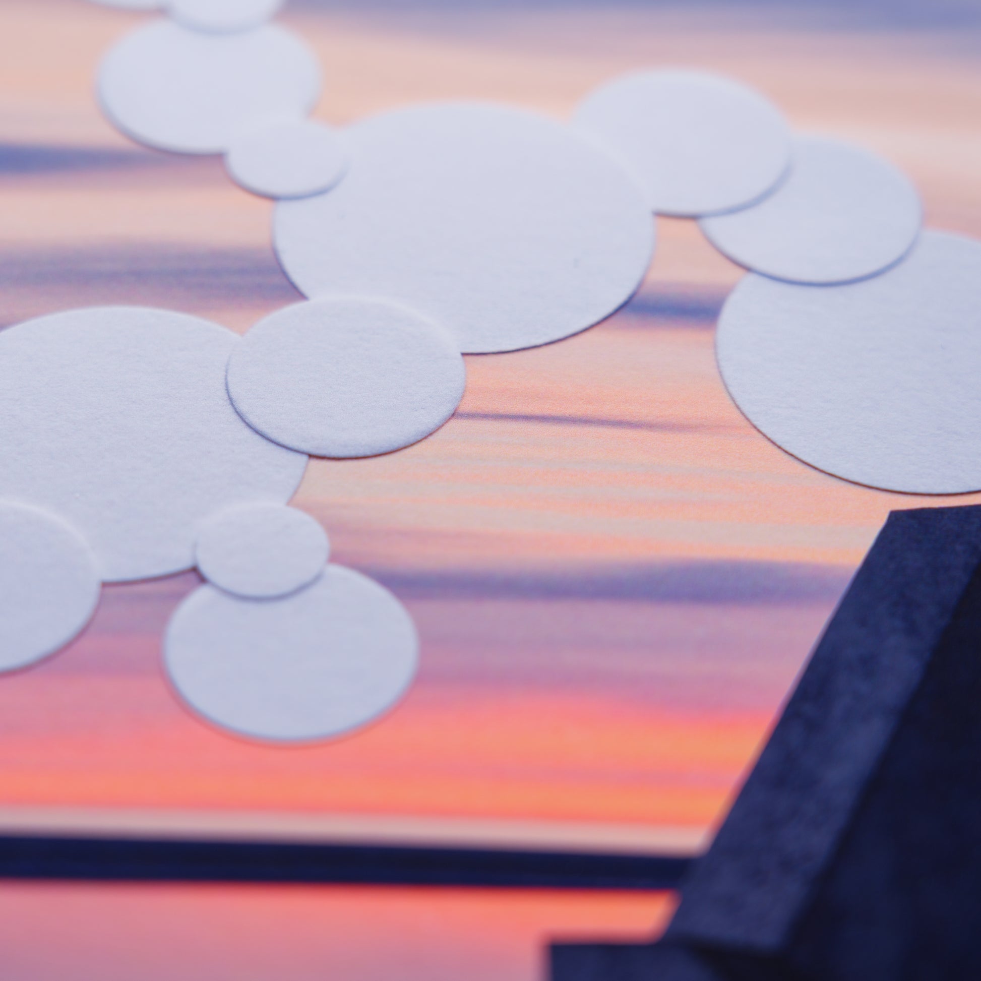 HOMMAGE A NICOLAS LEDOUX 2 est présenté ici sous la forme d’une édition. Il s’agit d’une reproduction fidèle de l’œuvre originale, créée à partir de disques de papier découpés puis appliqués sur la photographie initiale.